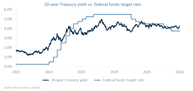 Although the administration has expressed support for a lower federal funds rate, several policy developments since taking office continue to complicate that objective. In particular, recent tariff actions – some of which were legally challenged and later invalidated by the Supreme Court – have contributed to ongoing uncertainty around trade policy. Subsequent temporary tariff measures, even if intended as interim steps, may shape expectations for future policy direction.